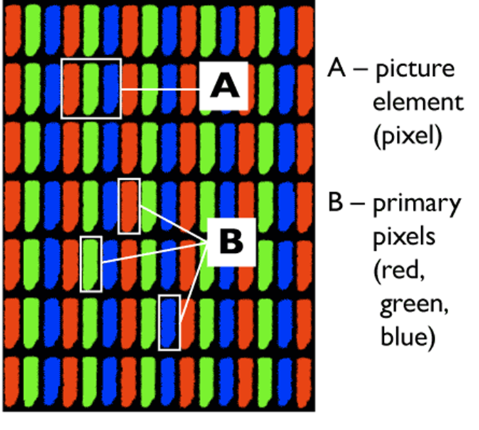 Sur un écran, chaque pixel est composé de trois sources de lumière (rouge, verte, bleue). En variant l’intensité de chacune d’elles, on affiche les couleurs.