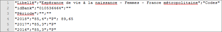 On constate que le séparateur de données utilisé n'est pas la virgule mais le point virgule.