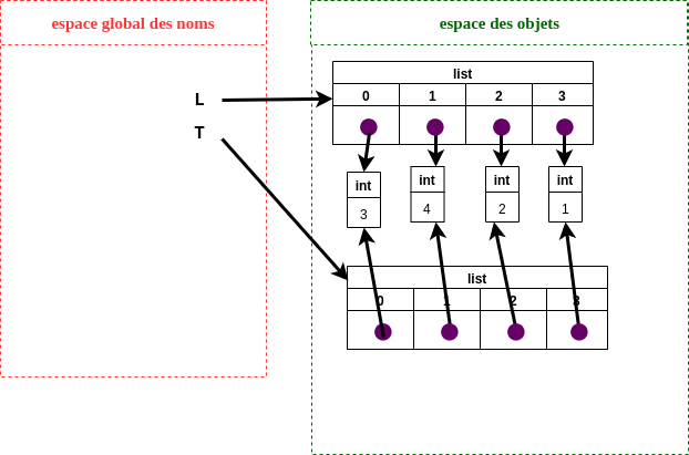 L = [3, 4, 2, 1] T = copier(L)L'instruction
