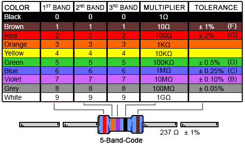 La valeur de résistance peut avoir moins ou plus de chiffres. Dans ce dernier cas, la valeur du quatrième chiffre (à partir de la gauche) permet de déterminer s'il est nécessaire d'arrondir ou non.
