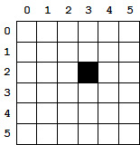 Ainsi, dans l'image ci-dessous, seul le pixel (3, 2) est noir.