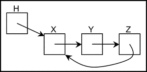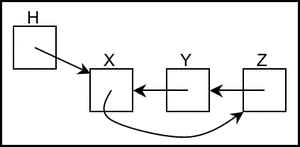 On dispose de boîtes reliées par des flèches. Une instruction, utilisant le signe :=, permet de modifier une flèche.