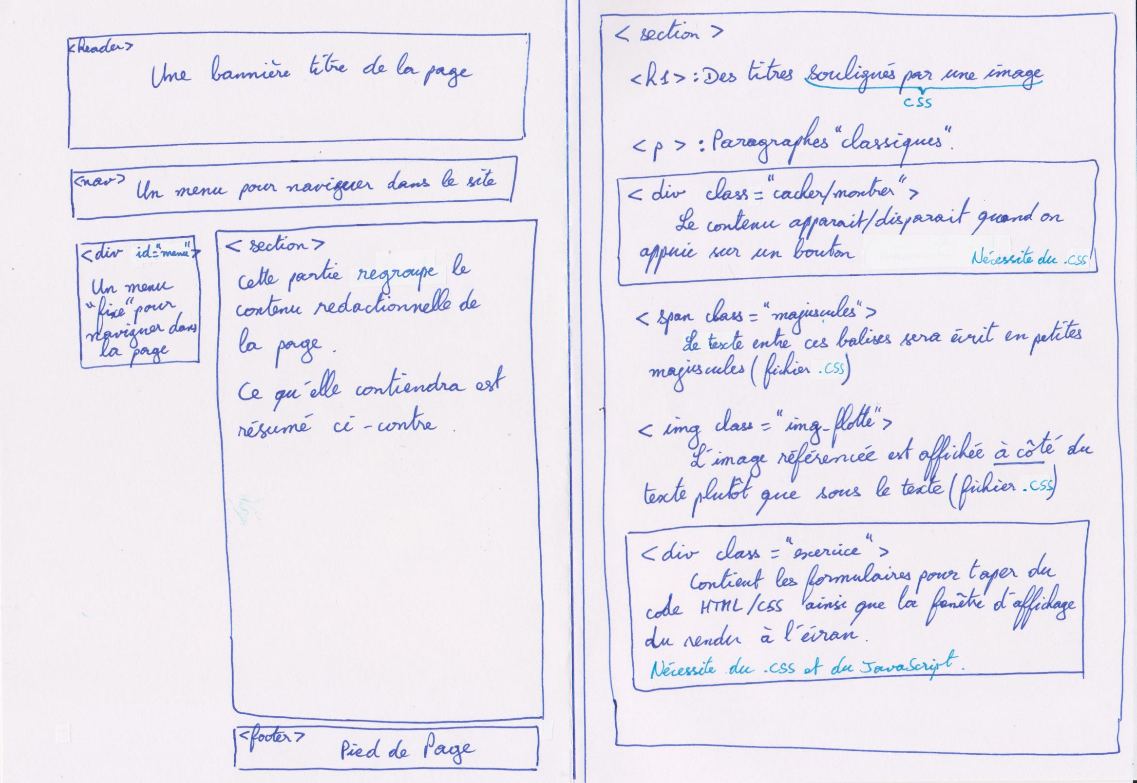 On prépare un croquis qui permet d'anticiper la structure de la page. Cette structure