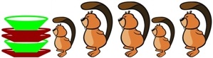 A la cantine de l'école de Castor, les petits castors mangent dans des assiettes creuses vertes, et les grands castors mangent dans des assiettes plates rouges. Les castors travailllant en cuisine préparent des piles d'assiettes corespondant à la file d'attente des castors. Ils doivent empiler les assiettes vertes et rouges de façon à ce que chaque castor dans la file d'attente reçoive une assiette corresponant à sa taille.